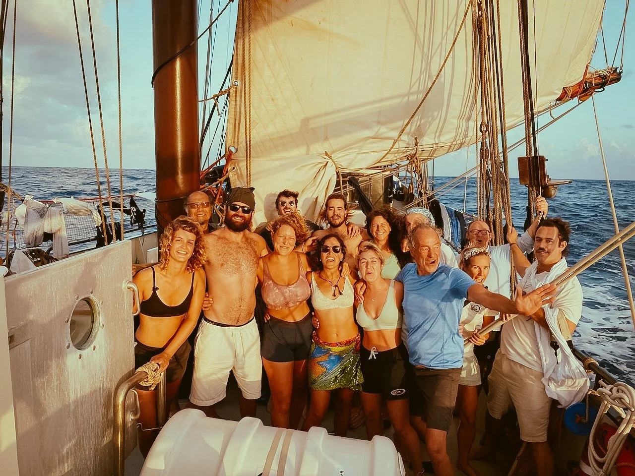Helping new people connect with the ocean is central to van der Veeken’s vision of the future. “I’ve come to realise how disconnected from nature we are in our daily lives and I believe this is one reason why people are so unwilling to take responsibility for their own role in the climate crisis,” she muses. “Sure, we’ve all seen reports on the news about islands made of plastic, beached whales and turtles who’ve choked on straws, but it feels so intangible when it’s far away. When you sail, you see this stuff first hand. I’ve swum through a disco of microplastics in the Azores and am haunted by a multi-day trip where we expected to live off fresh fish but only caught plastic bags.”